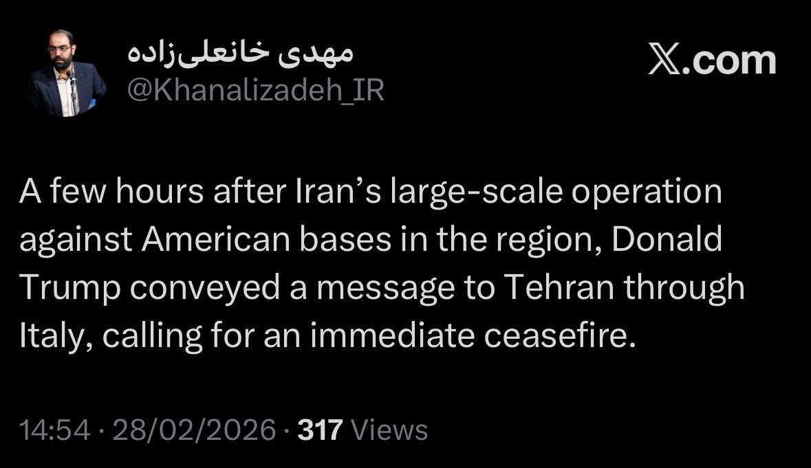Pepe Escobar just a while ago posted an image from X on his Telegram channel stating that Trump is already getting pressure to call for a ceasefire: